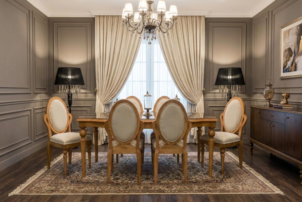 بر خلاف بسیاری از میزهای سلطنتی که فضای زیادی اشغال میکنند، میز غذا خوری مدل لورنزو بهگونهای طراحی شده که حتی در فضاهای آپارتمانی و سالنهای متوسط نیز بهخوبی جای بگیرد و محیط را شلوغ نکند.